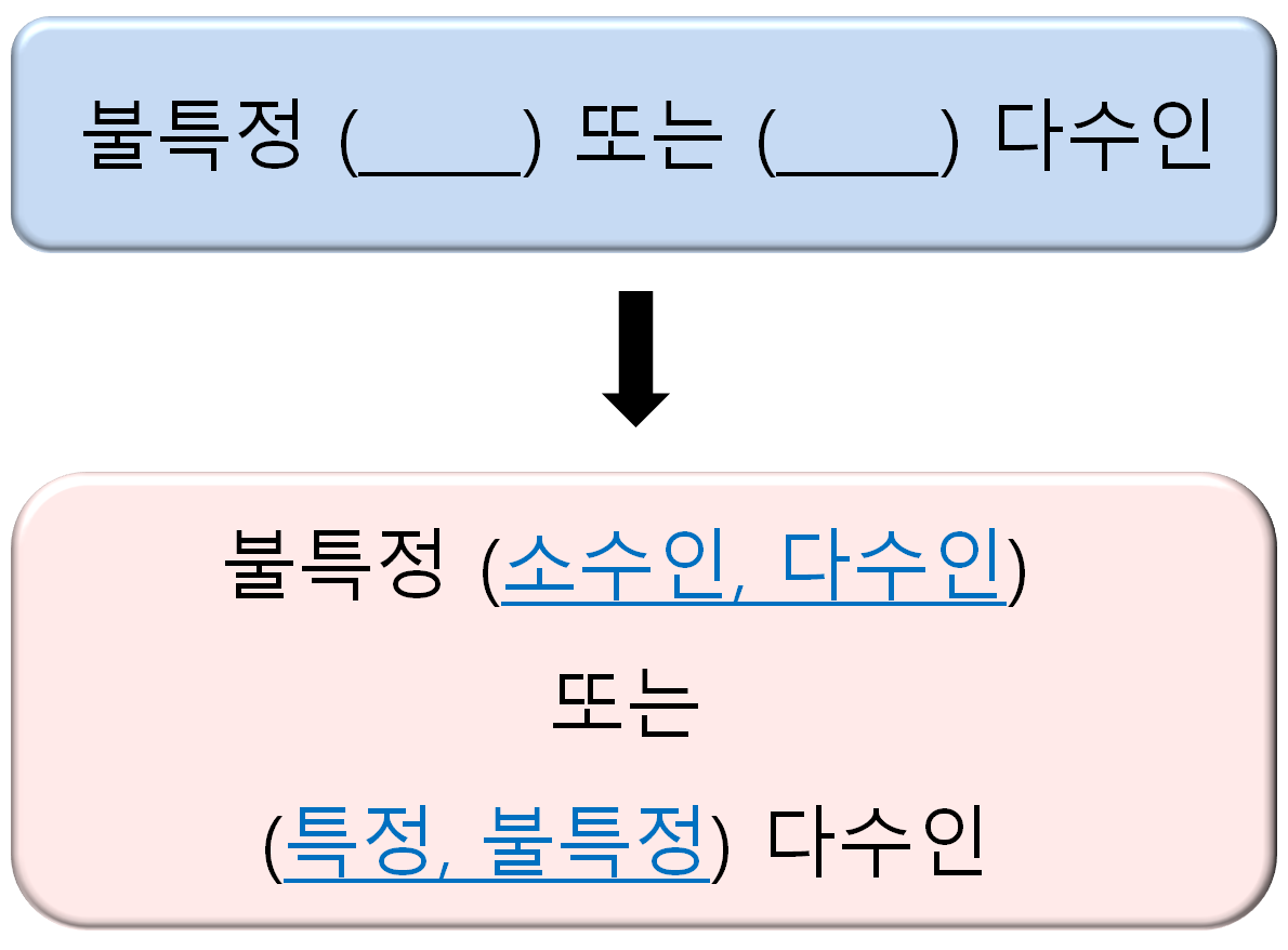 하지만 여전히 완벽히 이해하시긴 어려울 겁니다. 불특정과 특정이 의미하는 바를 알 수 없고, 소수와 다수를 구분할 수 있는 기준이 없기 때문입니다. 판레에서도 불특정과 특정을 구분할 수 있는 기준과 소수와 다수를 구분할 수 있는 구체적이고 일반적인 기준을 밝히지 않았습니다. 결국 다수의 대법원 판례를 분석하고 공통점을 찾아 그 기준을 찾는 방법밖에 없는거죠. 분석은 제가 했으니 여러분들은 그냥 읽어보시기만 하면 됩니다.